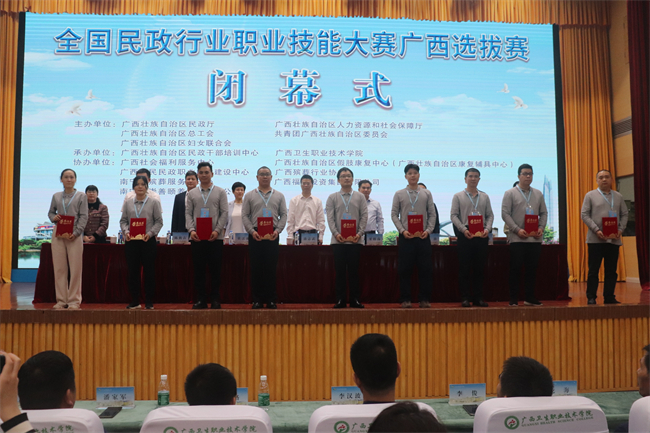 2023年11月25日,由广西民政厅、广西人力资源社会保障厅、广西总工会、共青团广西区委、广西妇联主办的全国民政行业职业技能大赛广西选拔赛圆满落幕。本次大赛为广西级一类职业技能竞赛,设置假肢装配工、矫形器装配工等5个项目,均为单人赛项。来自全区的29名选手参加了假肢、矫形器装配工职业技能选拔赛。