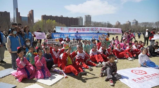 图为滨海新区残联举办世界孤独症关注日公益活动