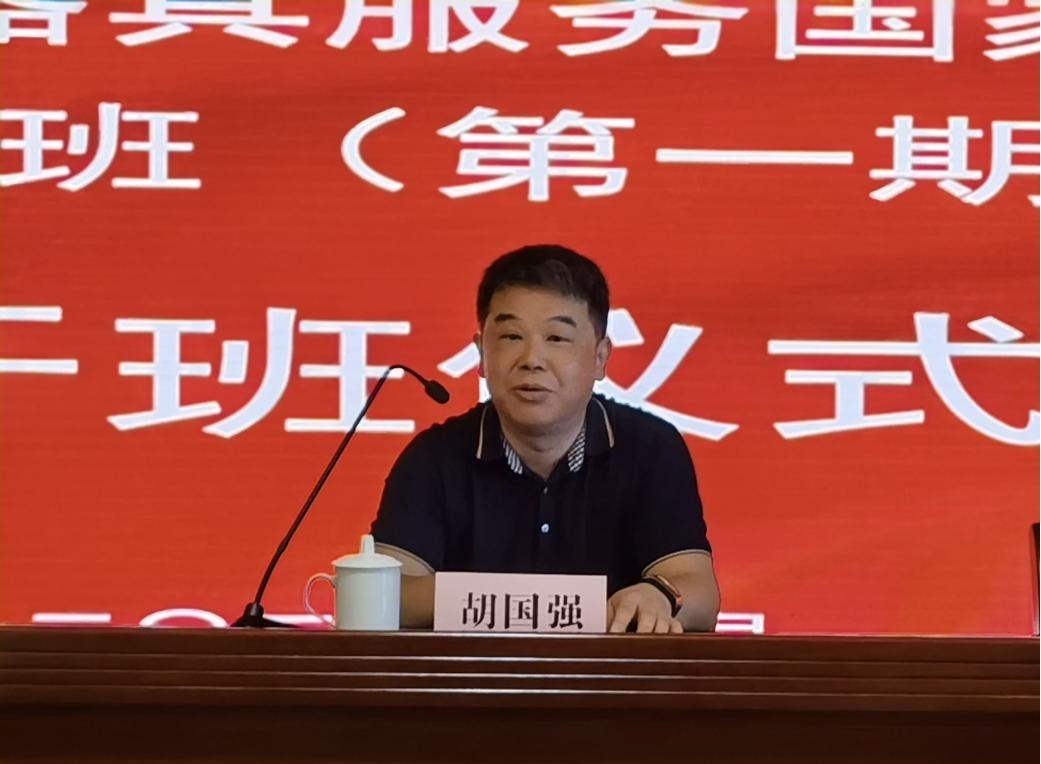 图为中国残疾人辅助器具中心全国工作处处长胡国强出席开班仪式并讲话