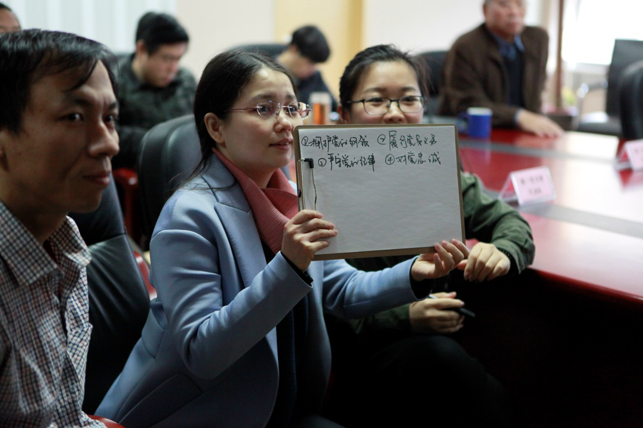 图为全体党员为答对题的党员鼓掌喝彩