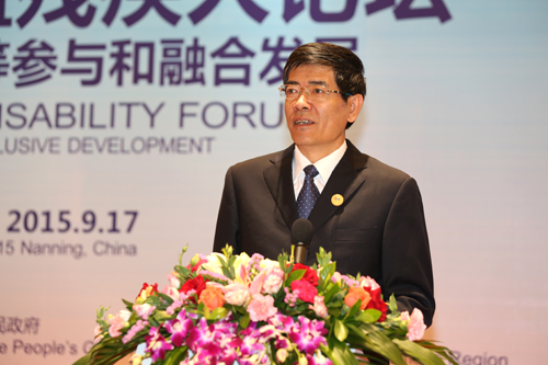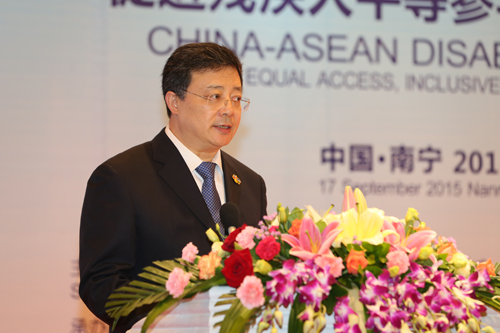 中国残联副理事长贾勇,中国-东盟中心秘书长杨秀萍,印尼、文莱、柬埔寨、老挝、缅甸、泰国、菲律宾、越南八国负责残疾人事务的部长级官员或代表作论坛主旨演讲,共商中国-东盟残疾人事务的合作交流。贾勇在演讲中发出了“建立交流合作长效机制、合作开展‘促进残疾人平等参与和融合发展’理论研究、开展残疾人相关产业合作和技术交流、实施多种形式的援助项目”的倡议。