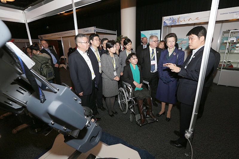中国残联主席张海迪,英国安妮公主,中国残联副理事长贾勇,以及来自全球60多个国家和地区的康复组织的管理者和专家参观了展览。