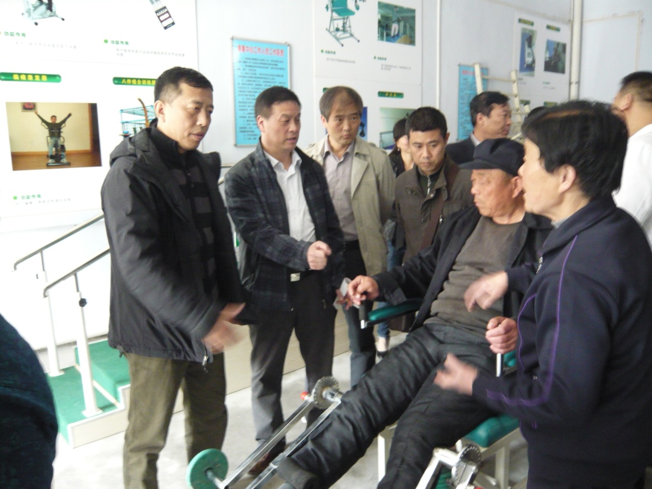 首先,课题组人员参观工作现场,与工作人员进行咨询和交流,查看了康复设备和档案资料。随后,与三个单位负责人进行座谈和交流。座谈会上课题负责人陈光介绍了课题背景、主要内容、康复产品功能和特点、提出了选择应用示范社区基本要求等。与会单位人员介绍各自单位基本情况,表示愿意作为应用示范单位,配合开展相关工作。