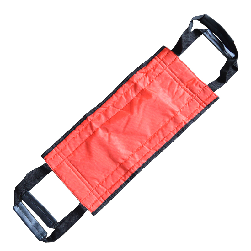 1、医护人员或者亲属紧握移乘带拉手,将移乘带中部放入患者臀下,确认器具牢固、稳定。