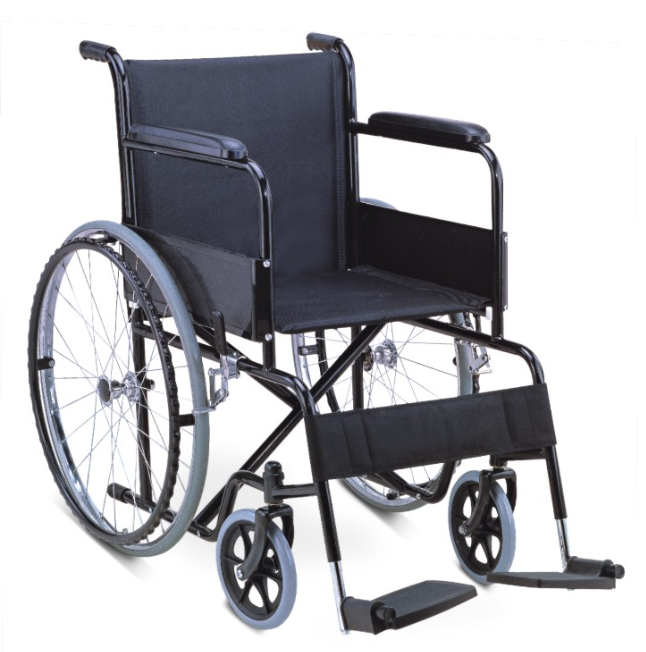 后轮:24英寸高强度钢轮圈、优质灰色免充气聚氨酯后轮,配置高强度金属手轮。