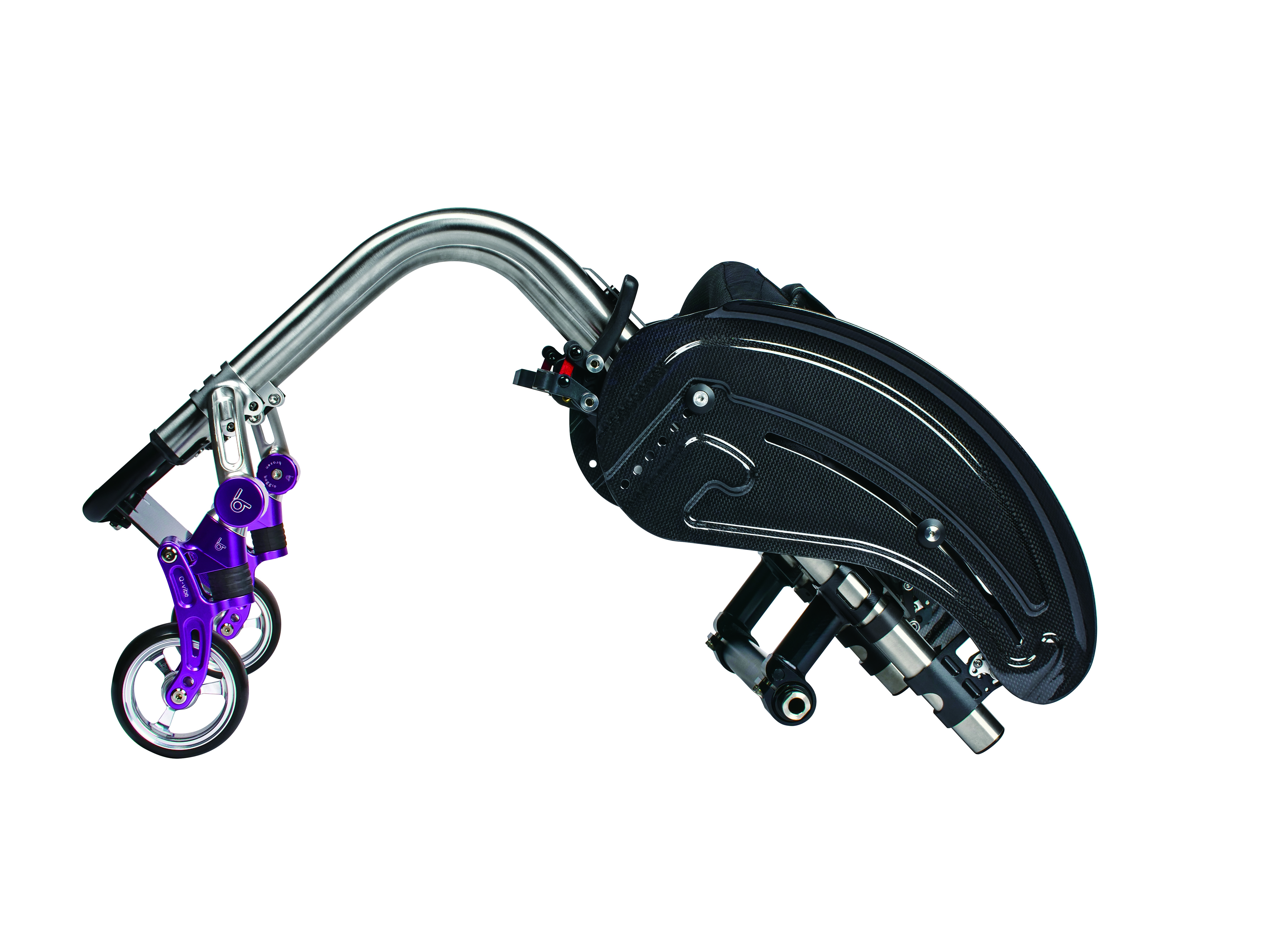 为轮椅使用场景而专门选择的钛合金车架,具有强度高、抗腐蚀性能强、结构稳定、缓振性能强等特点。