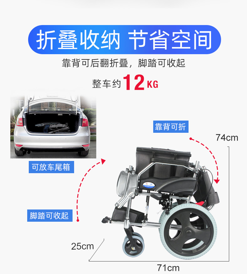 5、背靠安装可折式后把手、可折叠式车架,方便携带出行,且能节省占用空间位置。