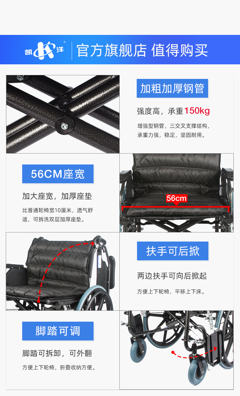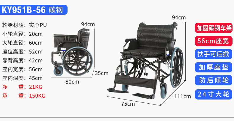 凯洋 手动轮椅车 KY951B-56