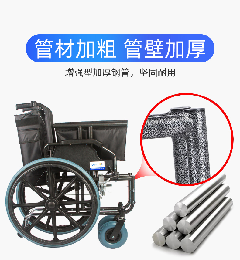 6、加装辅助轮安全装置,高辅助防止轮椅在行驶过程中倾翻。