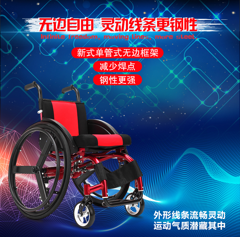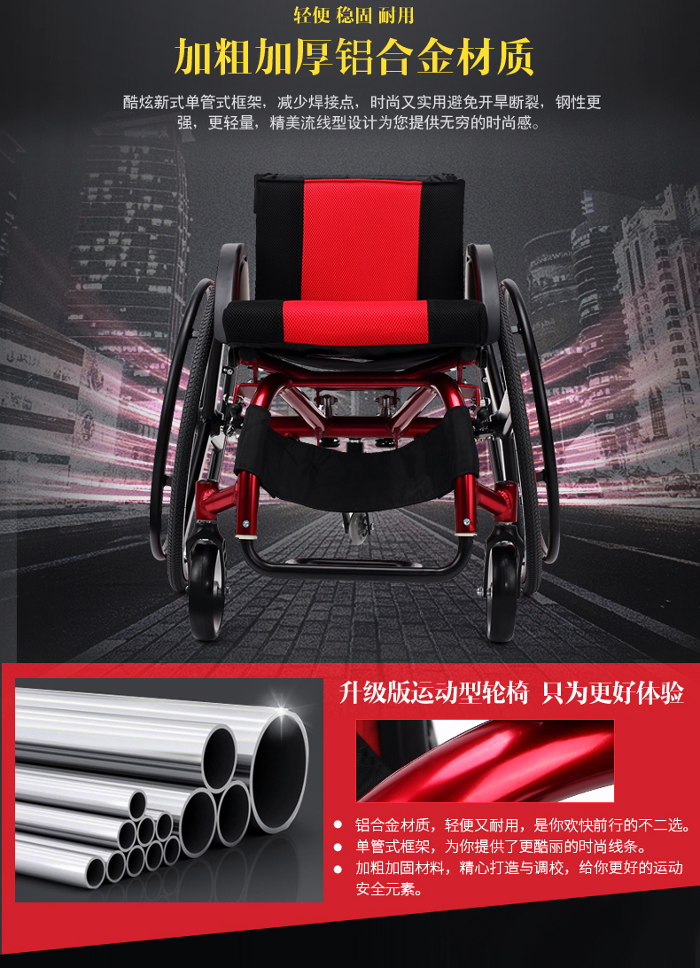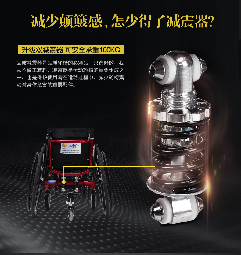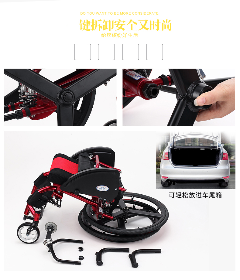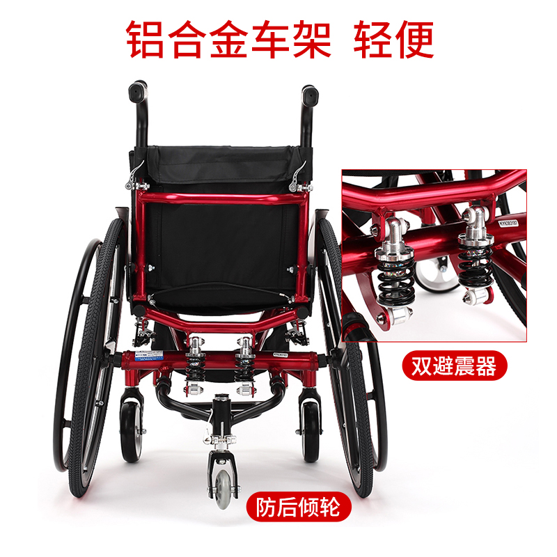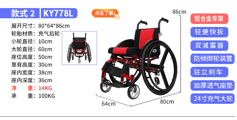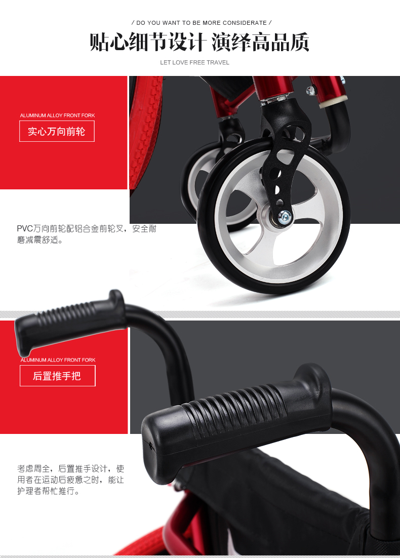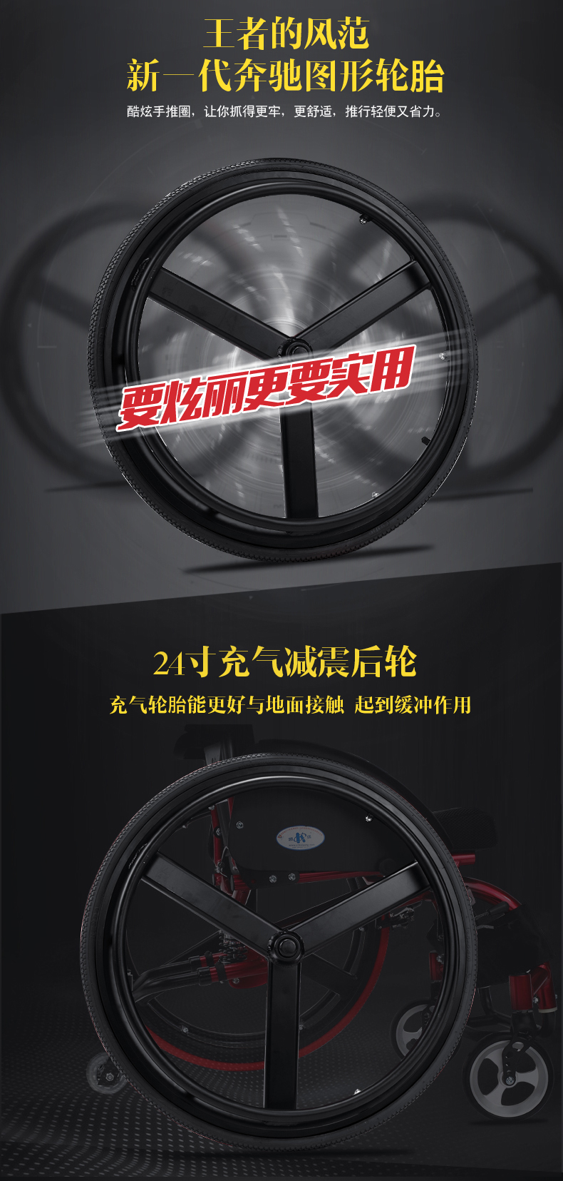 4.前置耐磨4寸PVC万向前轮配铝合金前轮叉;后置24寸快拆式后轮,减震功能卓越.