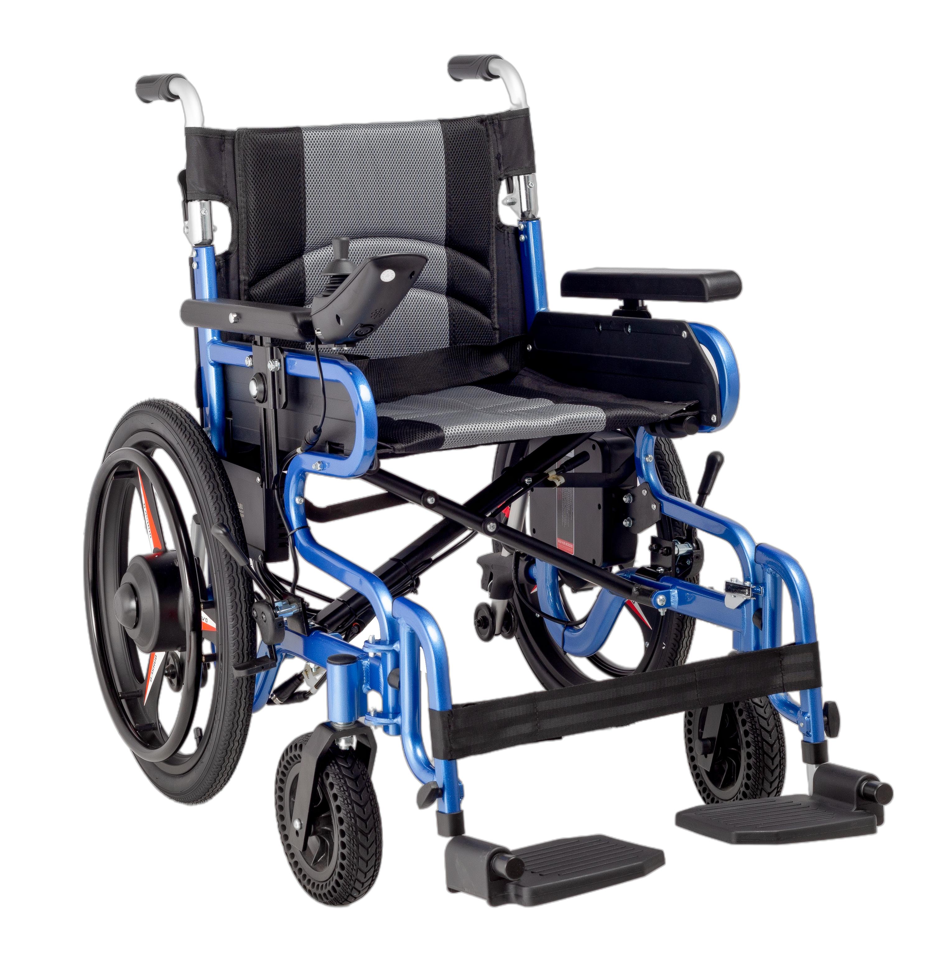 - 产品特点:电池驱动,有单手操作电子控制装置的四轮轮椅。