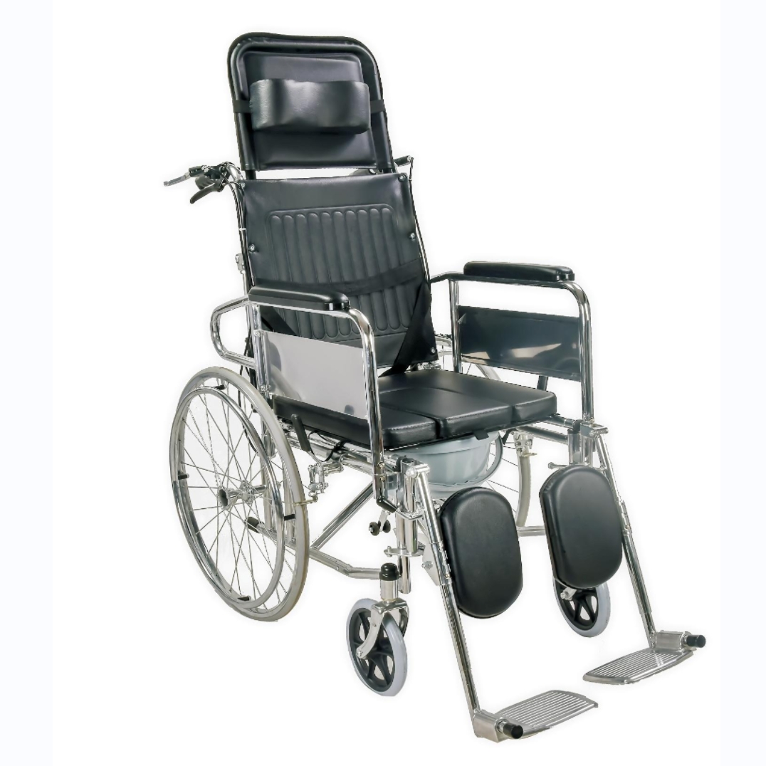 车架:高靠背可平躺, 有头靠,采用直径22*1.2厚的钢管焊接而成,表面电镀,后躺角度可调,带坐便功能,安全、牢固;