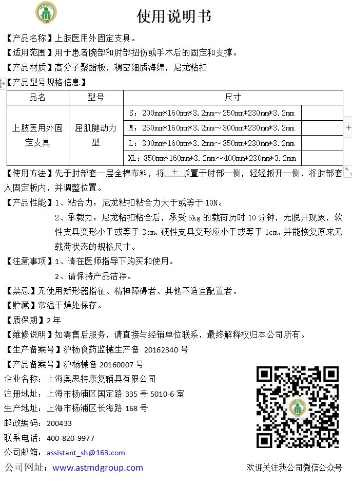 奥思特 J上肢医用外固定支具 伸肌腱动力型:S、M、L、XL