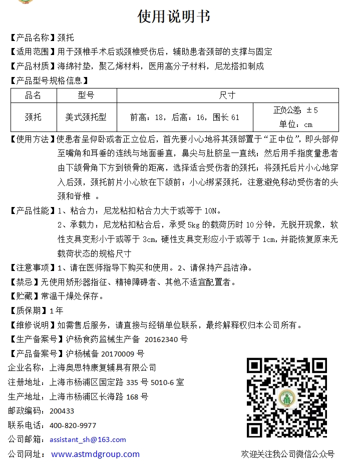 奥思特 J颈托 美式颈托:均码可调