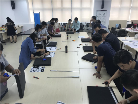 图为学员进行轮椅坐垫的制作
