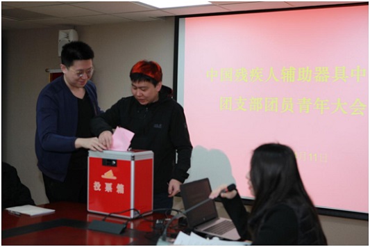 4月11日,中国残疾人辅助器具中心召开了团员青年大会,举行团支部换届选举。中心党总支书记李晞同志、青年委员袁洪伟同志、全体青年参加了会议。