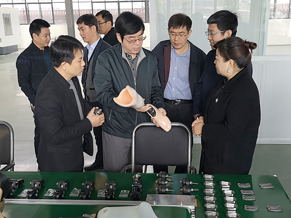 在西南区域中心建设现场,李晞主任表示,要借基础设施建设的契机,加快区域中心建设进程,在医工结合、技术服务、人才培养等方面开展模式探索,将其打造成辐射周边省份的示范中心。在布法罗公司,李晞主任观看了外骨骼机器人和医疗云智能数字信息软件系统的演示,对企业将前沿科技应用于残疾人服务表示赞许,并建议在更多方面推广应用这些产品。在午跃科技公司,李晞主任了解了基本型课题“低成本轻便型钛合金假肢配件研发”的进展情况,希望用好“钒钛之都”的资源优势,精心组织课题实施和成果应用,让更多的残疾人用上好产品。