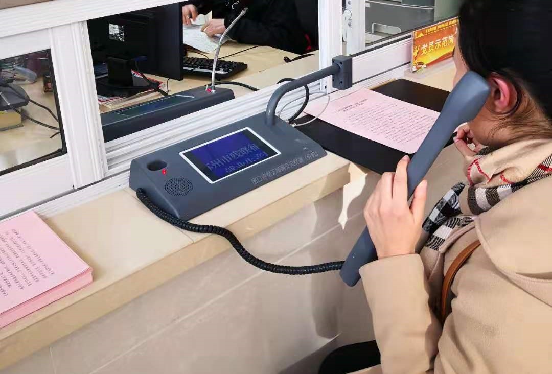 图为残疾人试用公众场所(窗口)交流无障碍信息终端