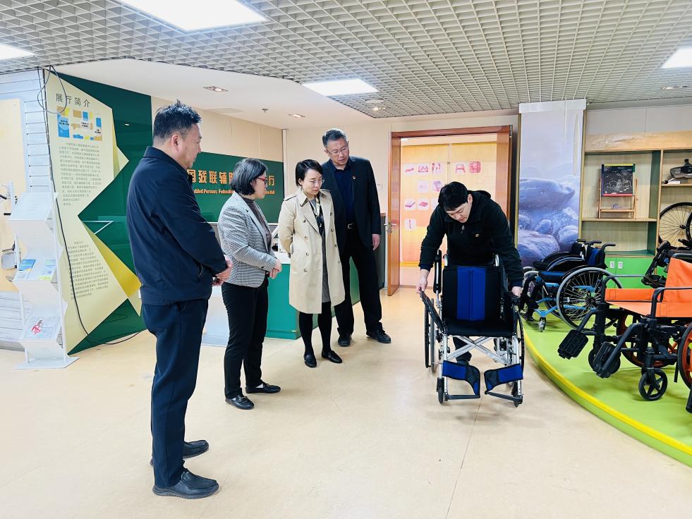 中心党总支书记孔德明同志陪同工商银行一行参观中国残联辅助器具展示厅,技服处负责同志对展厅辅助器具功能、特点进行详细介绍,并对适合银行应用场景进行无障碍环境改造的辅助器具开展针对性讲解,使各位党员同志对残疾人、老年人的辅助器具需求有了更为深入的了解。
