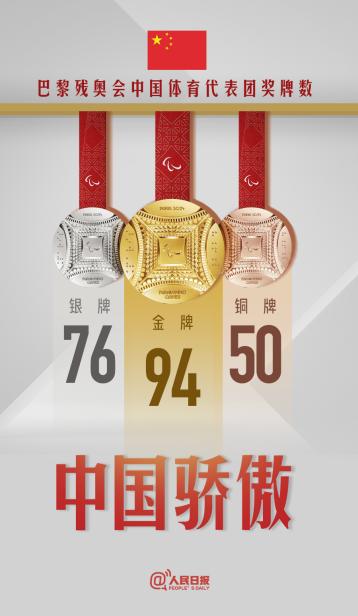 当地时间9月8日,2024巴黎残奥会落下帷幕。中国体育代表团取得94金76银50铜,共220枚奖牌的优异成绩,连续六届残奥会位列金牌榜、奖牌榜双第一。