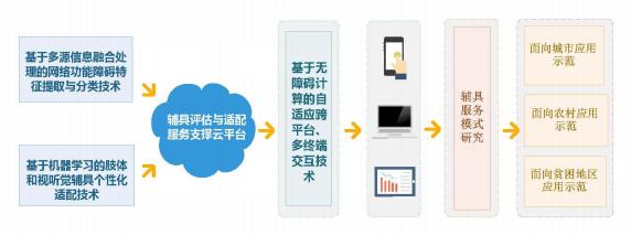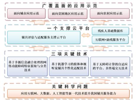 本项目旨在应用互联网、大数据、人工智能等新一代信息技术提高我国辅具服务能力,拟建立国家辅助器具公共服务平台和国家辅助技术资源库(数据库) ,作为中国残联信息化服务平台的重要组成部分;在研究我国辅具服务模式的基础上,突破肢体和视听觉远程智能 化功能障碍评估、辅具适配和康复训练等方面技术,建立远程、移动、智能一体化融合的功 能障碍者评估、辅具适配与康复效果追踪、随访、监测闭环连续服务系统。在全国 4个省市 30 个区县,指导建立 60 个规范化示范点,开展应用示范,发挥辅具产业在助残脱贫、应对老龄化,促进全民健康领域的作用。